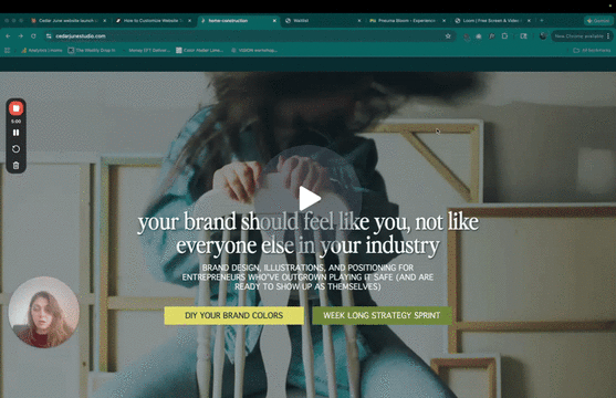 A video is a short clip (often looping) embedded on your website to quickly show your product, process, personality, or vibe in a way a static image cannot. It can be professional brand footage or simple DIY iPhone clips, and it works especially well in hero sections or as subtle background motion to help visitors understand what you do faster and stay engaged longer.